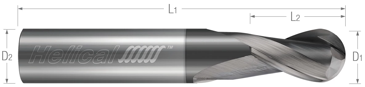 Engineered for exceptional performance and high metal removal rates in aluminium and other non-ferrous materials, this 2-flute ball nose end mill features a 30° helix optimised for superior roughing & semi finishing and chatter-free cutting. The Dplus coating offers enhanced tool life & maximum efficiency.