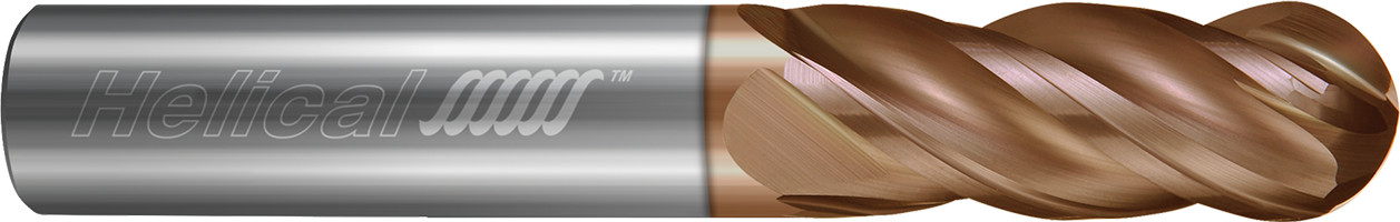 Ball profile end mill designed to extend tool life in stainless steels, high temp alloys, and hardened steels up to 65 Rc, and engineered with eccentric relief for maximum edge strength in both roughing and finishing applications.