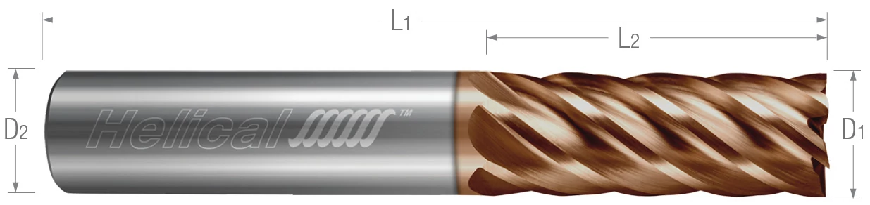 - 6 flute variable pitch design for reduced harmonics and increased feed rates