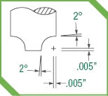 • 2° flares for smooth transitions